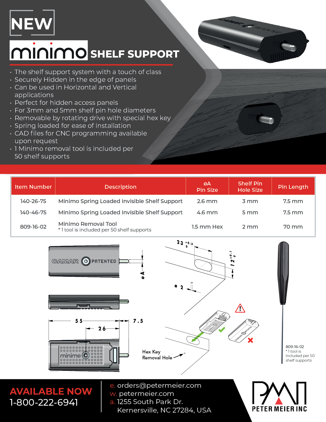 • One Minimo removal tool is included with every 50 Minimo shelf supports.