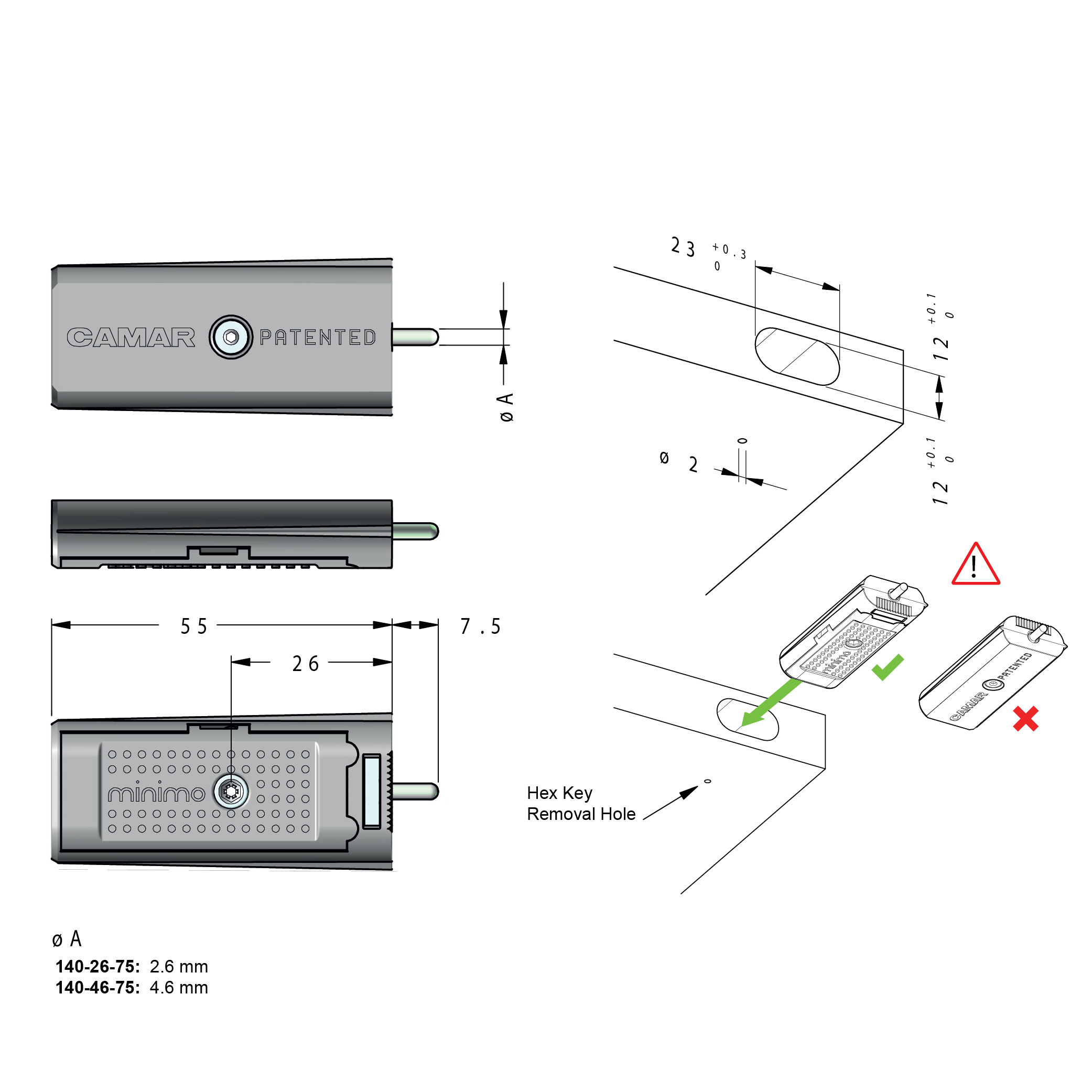 140-46-75 4.6 mm 5 mm 7.5 mm 100 / Box